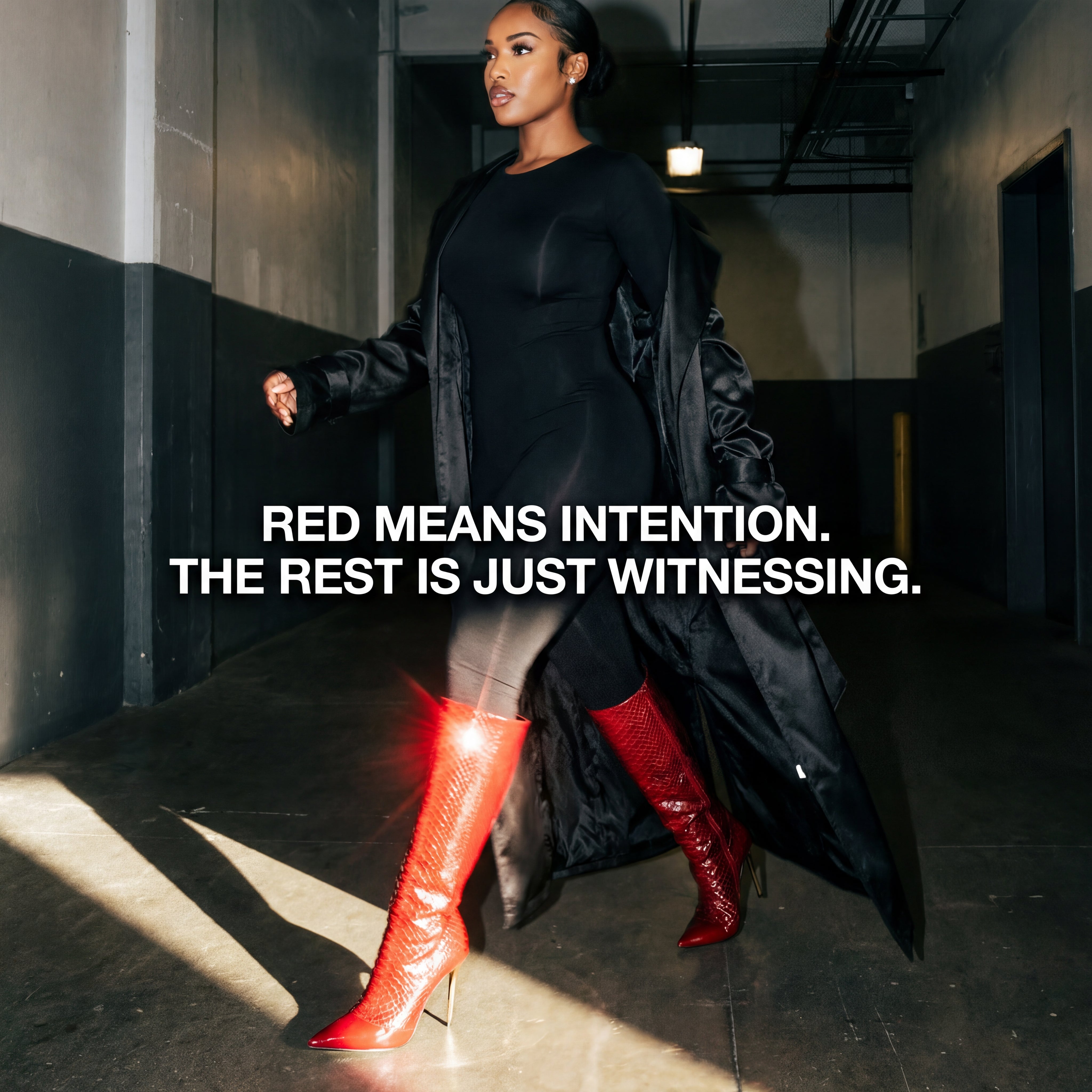 Devenir is not a destination. It is the moment before certainty settles in. Designed for those who understand that power doesn’t arrive loudly, Devenir moves with intent—measured, deliberate, inevitable. The silhouette extends the body, sharpens the stride, and alters the space it enters without asking permission. Every element serves a purpose. The height commands posture. The toe leads before the eye follows. The finish holds the light just long enough to be remembered. Devenir is worn by women who don’t rush outcomes. They become them.